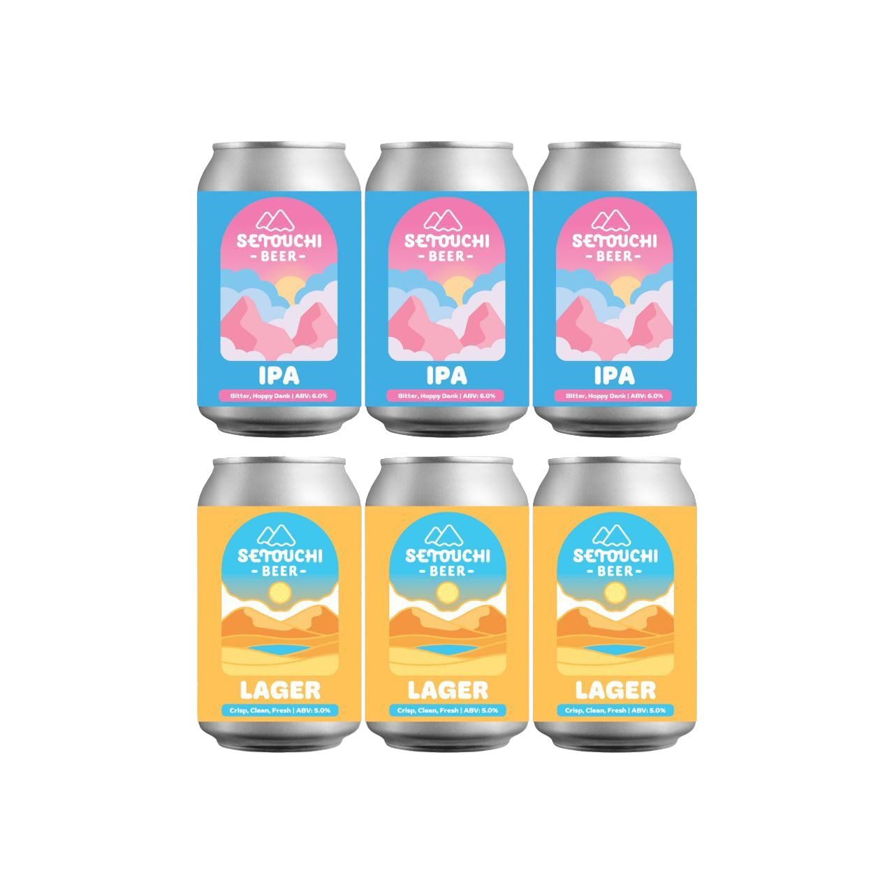 SETOUCHI BEERの定番ビールであるSETOUCHI IPAとSETOUCHI LAGERのセット。