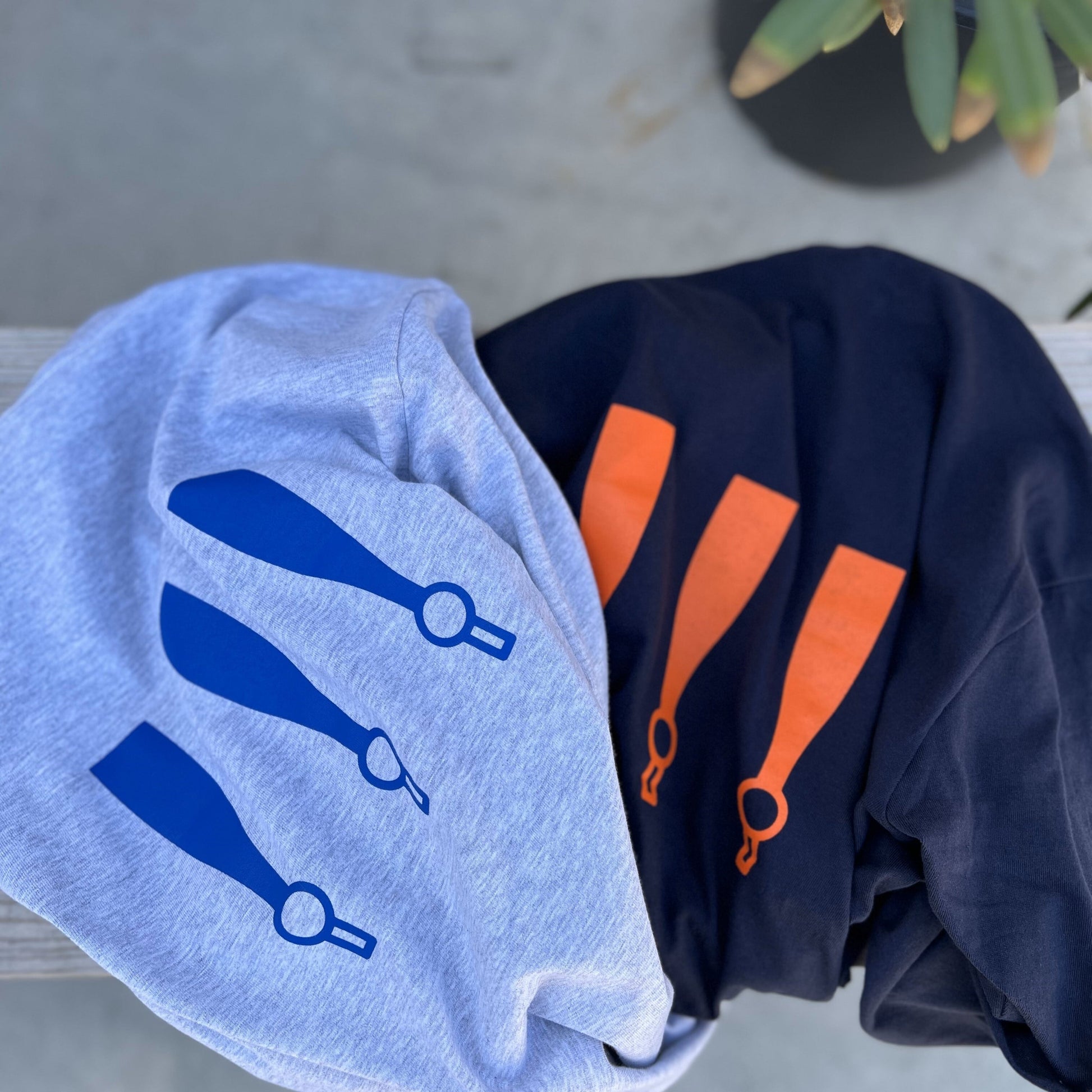 色はネイビーにオレンジのプリントと、アッシュグレーにロイヤルブルーのプリント。